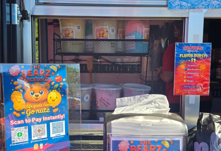 Get ready for a flavor adventure with our scrumptious Boil'd Peanutz, zesty fresh-squeeze lemonadez, mouthwatering candy apples (Drip'd Applez), fluffy cotton candy (Sugar Cloudz), and the sweetest freeze-dried candy around!
